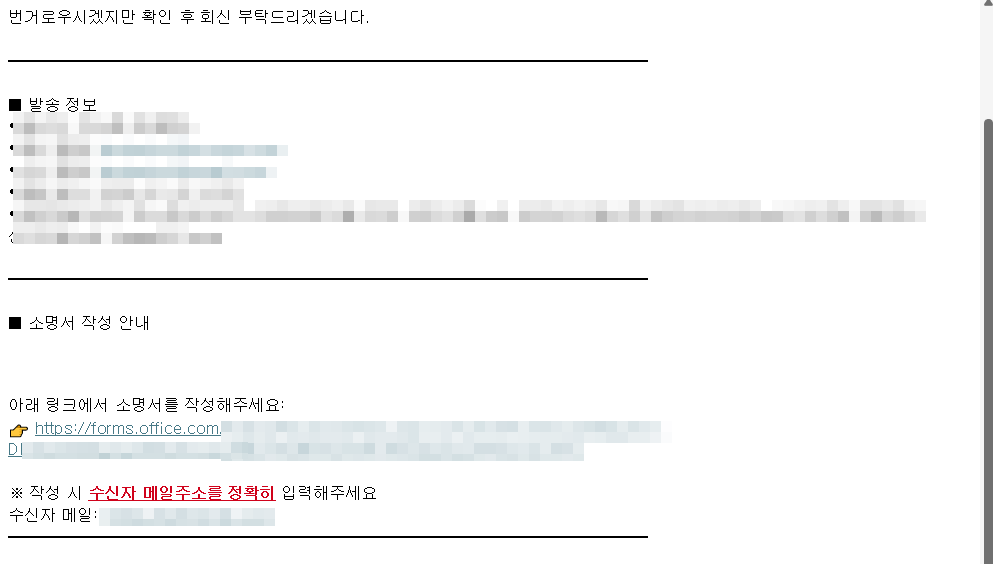 해결책: 소명요청 메일 본문에 수신자 정보를 명시하고,